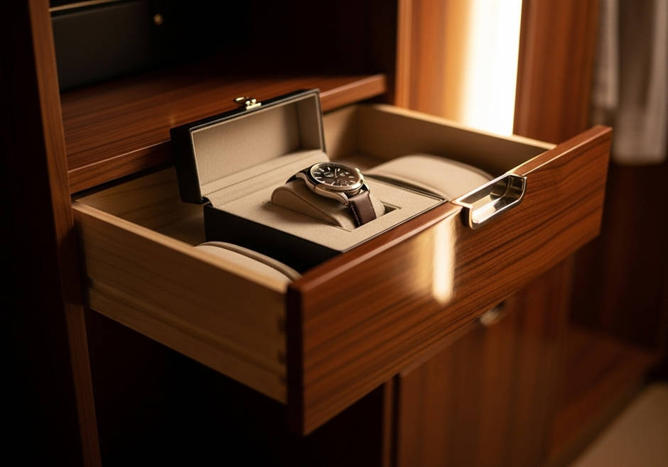 За годы работы я перепробовал десятки вариантов – от простых кожаных роллов до профессиональных сейфов с климат-контролем. Правильно подобранное хранилище защищает часы от всех перечисленных выше врагов одновременно. Специальная шкатулка с мягкой тканью внутри предотвращает царапины, герметичный бокс защищает от влаги и пыли, а виндер поддерживает автоматические часы в рабочем состоянии. Так как хранить часы наручные дома нужно максимально бережно, выбор места имеет важное значение.